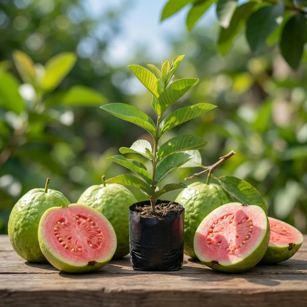 A Muda de Goiaba Gigante Tailandesa, produzida e selecionada pela ESSÊNCIA DO CAMPO, é uma variedade muito valorizada pelo tamanho avantajado dos frutos, alta produtividade e excelente padrão comercial. Ideal para quem busca frutos grandes e de alto rendimento.