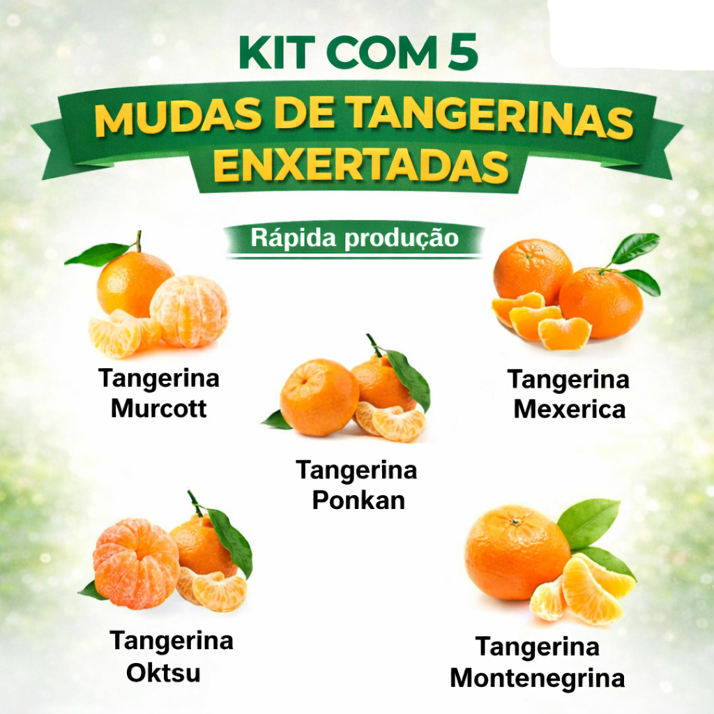 🌱🍊 KIT Tangerinas Enxertadas - Murcott, Ponkan, Mexerica, Oktsu e Montenegrina Único | ESSÊNCIA DO CAMPO